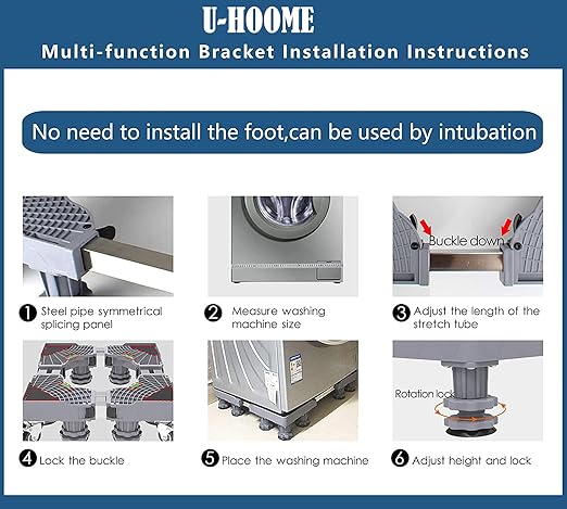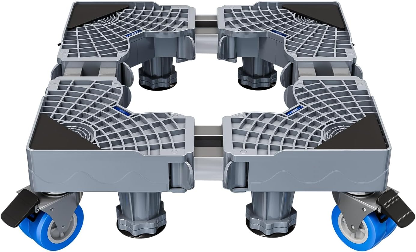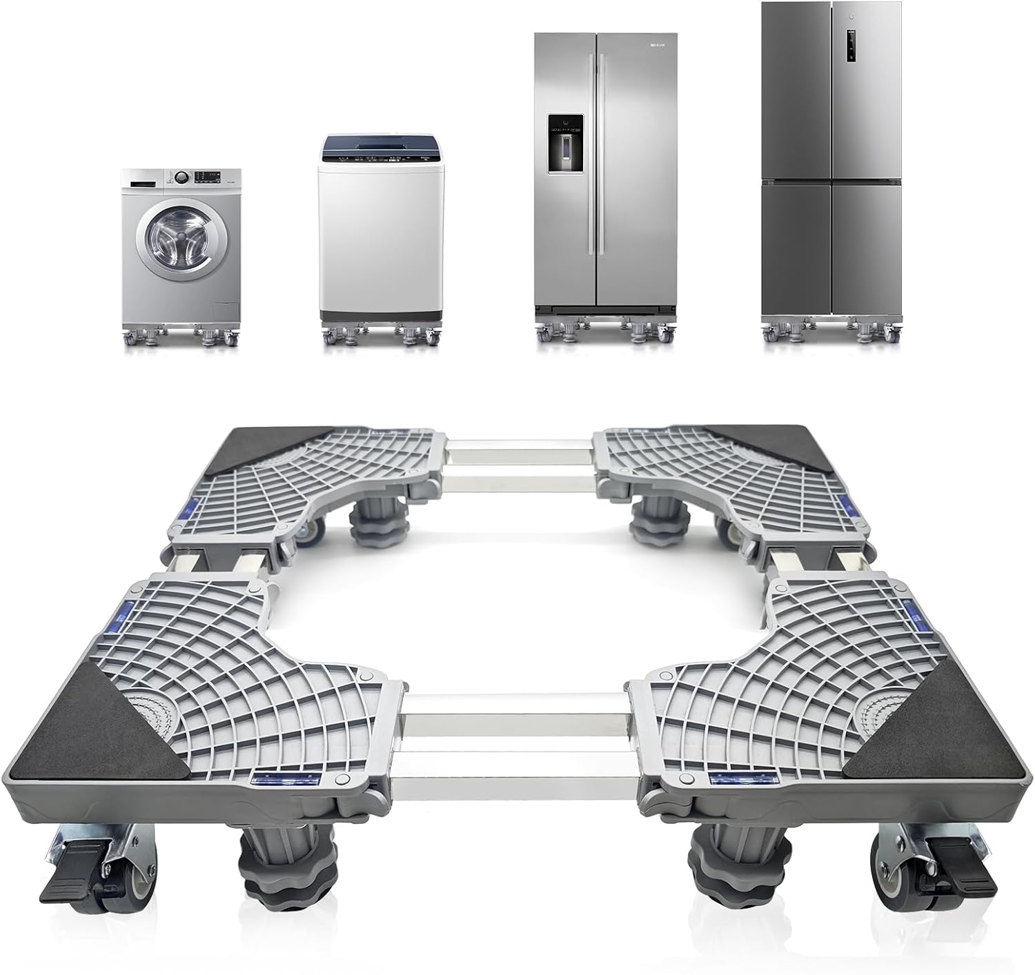 This adjustable mobile stand is suitable for a wide range of household appliances, including washing machines, dryers, refrigerators, freezers, air conditioners, large plant pots, and other heavy-duty equipment.